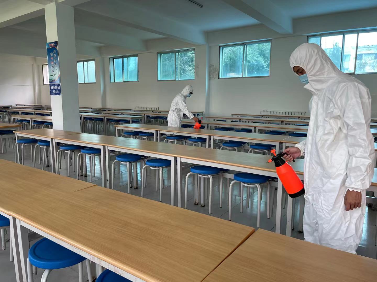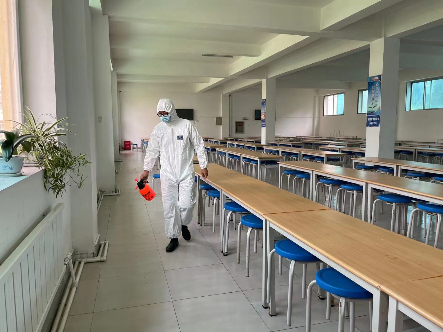 學(xué)校內(nèi)開展全面防疫消殺行動(dòng)。對(duì)教學(xué)樓、辦公樓、學(xué)生寢室、食堂,校內(nèi)通道、公共廁所燈場(chǎng)所逐一實(shí)施消殺,不留任何一個(gè)死角,確保達(dá)到最佳消殺效果。