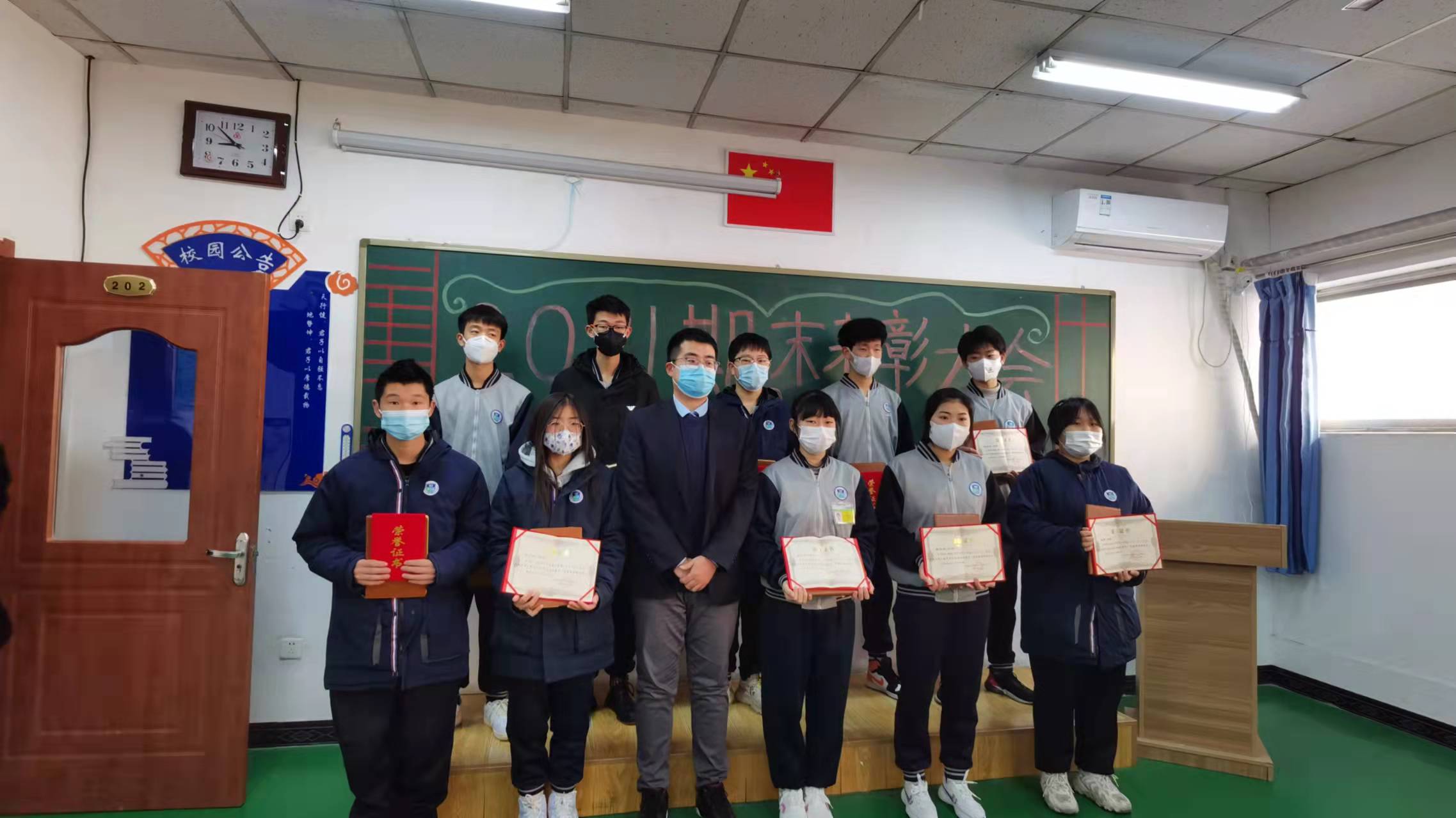 伴隨著激昂的音樂聲,教務(wù)處李曉喻主任宣布并頒發(fā)以“藝”抗疫、共克時艱教學活動月“室內(nèi)手勢舞比賽”、“繪畫比賽”、“攝影比賽”等獎勵。
