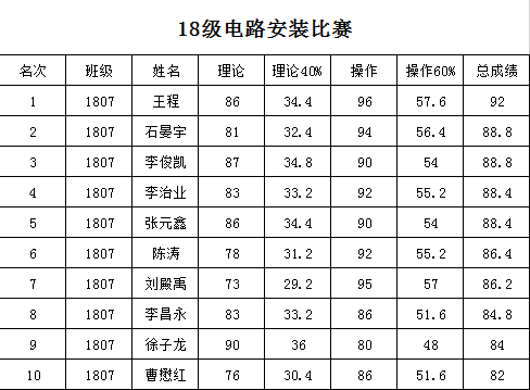 本次比賽按照市級技能比賽考核的標(biāo)準(zhǔn)進(jìn)行,分理論答題和現(xiàn)場操作兩部分。理論答題過程中學(xué)生需將電路圖的原理進(jìn)行分析說明,實踐操作環(huán)節(jié),學(xué)生需在規(guī)定時間內(nèi)完成電路圖的現(xiàn)場連接。經(jīng)過50分鐘的比賽,全體參賽同學(xué)順利完成,最終王程、石晏宇、李俊凱獲得了本次比賽的冠亞季軍。