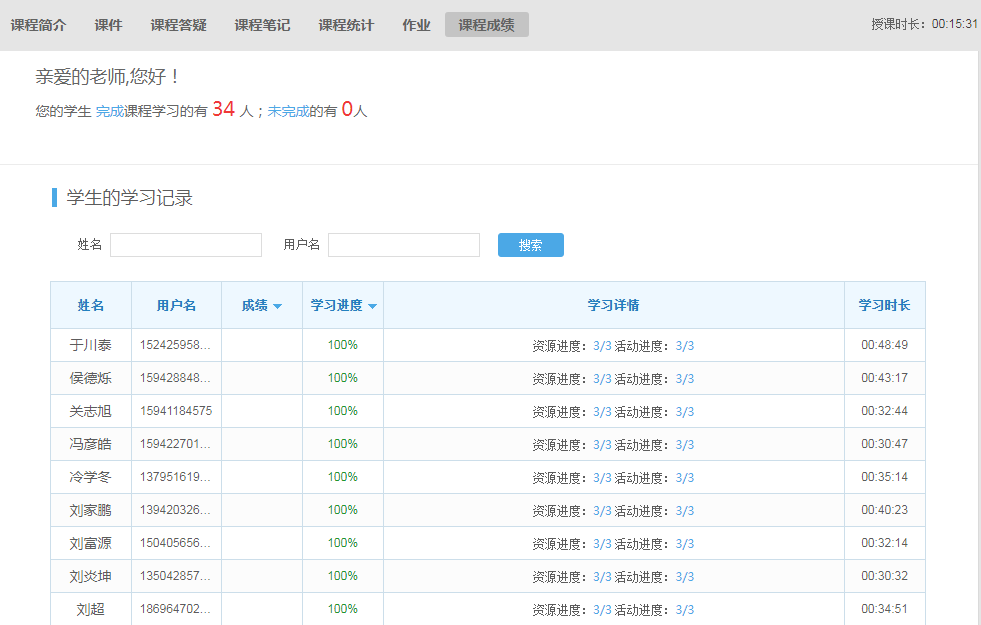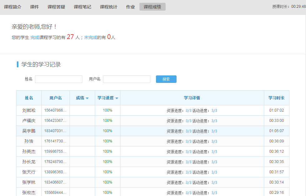 網課學習一周了,同學們的學習效果到底如何呢?我們隨機通過學習平臺查看教師的授課情況,可以看到同學們能夠按計劃地進行學習,并完成當堂課的作業(yè)。